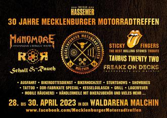 Wie dem auch sein - die Vorbereitungen für das 30-jährige Jubiläum, welches vom 27. bis 30. April 2023 in der Malchiner Waldarena stattfindet, laufen auf Hochtouren. Und mit den STICKY FINGERS, einer Rolling Stones-Coverband, sowie MANOMORE für Freunde der härteren Gangart, werden wir das Treffen entsprechend feiern. Lasst uns eine gute, gemeinsame Zeit haben.