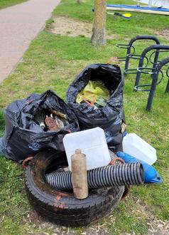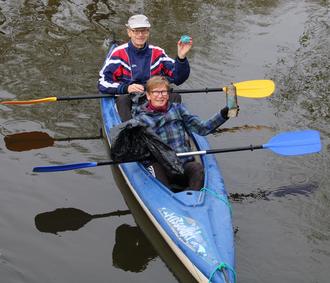 Ines und Martin Bauer waren zu Wasser unterwegs und sammelten eine Menge Müll ein.