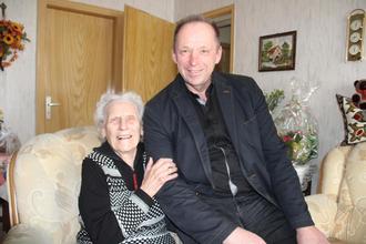 Karla Weirauch (li.) feierte am 27. März im Beisein von Bürgermeister Axel Müller ihren 100. Geburtstag.