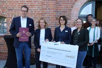 Auch Elisabeth Aßmann, Staatssekretärin aus dem Ministerium für Klimaschutz, Landwirtschaft, ländliche Räume und Umwelt Mecklenburg-Vorpommern, war anwesend, um Fördermittel zu übergeben. Sie vertrat dabei den erkrankten Dr. Till Backhaus.