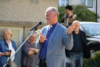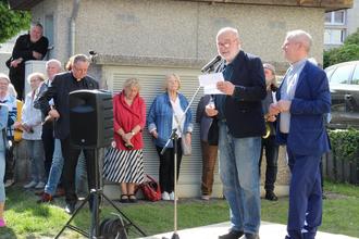 Hohe Vertreter der Religionsgemeinschaften und politische Verantwortliche der Stadt unterstützten die Realisierung des Gedenkortes. So waren Landesrabbiner Yuriy Kadnykov vom Landesverbandes der Jüdischen Gemeinden in Mecklenburg-Vorpommern, Weihbischof Eberlein und Bischof Jeremias vor Ort und sprachen zu den zahlreich erschienen Gästen.