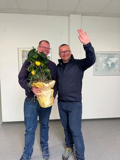 Nico Blüggel (neuer Werkleiter), rechts Piotr Lukasiewicz (sagt Tschüß)