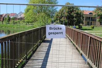 Aufgrund akuter Schäden an der Holzstruktur musste die Brücke im Stadtpark am Mühlenteich ab sofort und bis auf Weiteres gesperrt werden. Die Sperrung erfolgte am 12. Mai 2025 nach einer Begutachtung durch den Stadtbauhof.