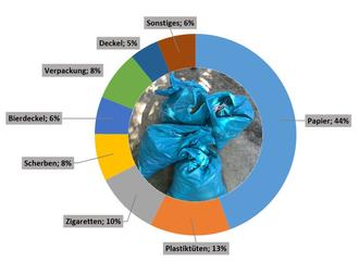 Bei der Auswertung wurden insbesondere allgemeine Leichtverpackungen diverser Art und Herkunft, Brötchentüten, Einwegbecher und jede Menge Zigarettenstummel nebst leeren Schachteln gefunden. An der Waage wurde die stolze Masse von 15.00 kg abgelesen. Fazit der Aktion ist, es muss am Verursacherprinzip gearbeitet werden.