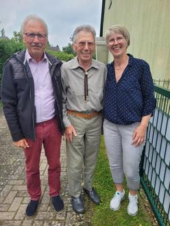 Wolfgang von Wilcke (Mitte) freut sich über die Glückwünsche der Vereinskollegen Michael Opperskalski und Diana Mundt.