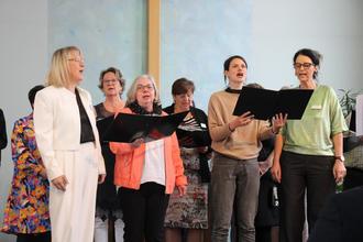 Der Gottesdienst wurde durch verschiedene musikalische Beiträge bereichert. Der Projektchor 2024, bestehend aus Mitarbeitenden des Sozialwerks, trat mit Unterstützung von Tobias Engel am E-Piano auf. Darüber hinaus spielten Johanna Sahm auf der Violine und Bettina Berg am Klavier.
