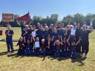 Unsere Kinderfeuerwehr ging in der Kinderstaffel an den Start. Auch sie hatten die Wochen zuvor fleißig geübt. Alle Kinder im Alter von 6 bis 10 Jahren flitzten über die Bahn, legten Knoten an und spritzten Dosen um. Und der Fleiß sollte belohnt werden. Wir belegten einen tollen 2. Platz unter insgesamt 10 Mitstreitern. Wieder einmal haben die Kinder somit einen Platz auf dem Treppchen erringen können, so wie in all den Jahren zuvor. Die Kinder waren überglücklich und die Betreuer wie immer mega stolz auf ihre Schützlinge.