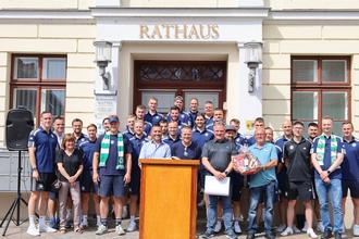 Der TuS Neukalen stand mal nicht auf dem Grün im Fokus, sondern bekam vor dem altehrwürdigen Rathaus die höchste Ehrung der Peenestadt zugesprochen, den Eintrag ins Ehrenbuch.