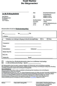 Ausländische Antragsteller können sich eines vereidigten Dolmetschers bedienen, Interessenten finden das Formular- Anmeldung zur Fischereischeinprüfung im Anhang und im Internet auf der Homepage der Stadt Marlow.