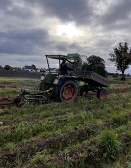 Die Kartoffeln waren bereits mit einer Maschine gerodet worden, sodass sie auf dem Acker bereitlagen. Nun hieß es für die Kinder: Ärmel hochkrempeln und fleißig aufsammeln!