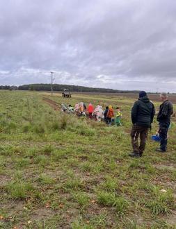 Mit Unterstützung des Carlo-Busses ging es hinaus auf das Feld von Bauer Felix Dilling, wo die Ranzenracker schon voller Vorfreude erwartet wurden.
