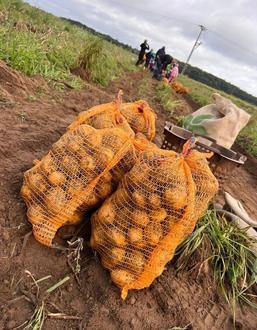 Mit viel Eifer sortierten die jungen Helfer die Knollen nach roten und gelben, denn im Frühjahr hatten sie zwei Sorten gepflanzt. Grüne oder beschädigte Kartoffeln wurden gleich aussortiert. Am Ende durfte jedes Kind stolz einen Sack Kartoffeln mit nach Hause nehmen.