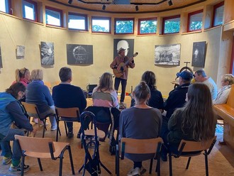 Die Ausstellungseröffnung zu KUNST HEUTE im Kunsthaus Lisa am 27. September 2025 war ein großer Erfolg. Für begeisterte Stimmung und Standing Ovations sorgte der Straßenmusiker JULIUS, der mit Gitarre und Klarinette die Vernissage der Künstlerin Ebba Radke musikalisch begleitete.