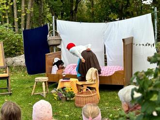 Inzwischen ist es zur Tradition geworden, dass das pädagogische Team der Kita „Grünschnabel“ jedes Jahr ein Märchen beim Kürbisfest in Alt Guthendorf aufführt. Wenn Familie Topp, immer am letzten Samstag im September, zum Fest rund um den Kürbis einlädt, kommen auch die kleinen und großen Märchenfreunde nicht zu kurz. Dieses Mal konnten die Zuschauer beim Stück „Rotkäppchen und der Wolf“ mitfiebern und die Rettung Rotkäppchens und der Großmutter miterleben. Die Wetterfee hatte es sich doch noch einmal überlegt und so konnten alle die Vorführung trockenen Hauptes im wundervollen Naturgarten genießen.