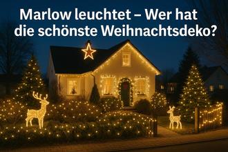 Schicken Sie bis zum 16. Dezember 2025 ein Foto Ihrer Weihnachtsdekoration versehen mit Name und Adresse per E-Mail an redaktion@stadtmarlow.de oder als Ausdruck in den Briefkasten am Marlower Rathaus.