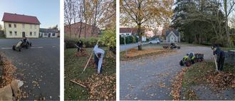 Jonas: „Ich fahre so gern mit dem Kettcar und bei dieser Arbeit habe ich die Möglichkeit mit dem Kettcar und dem Anhänger das Laub auf einen großen Haufen zu fahren.“