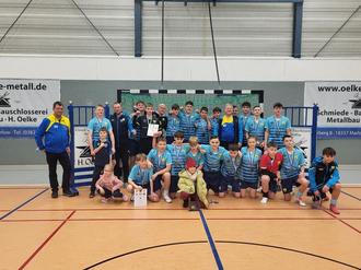 Im Anschluss ging es bei den E-Junioren spannend zu. Auch hier absolvierten unsere beiden Mannschaften das 1. Spiel, wobei sich die II. Marlower Mannschaft die ersten 3 Punkte einheimsen konnte. Am Ende war es ein Kopf-an-Kopf-Rennen zwischen SG Wöpkendorf und BSG ScanHaus Marlow II, welches unsere Nachbarn aus Wöpkendorf mit 1 Punkt Vorsprung gewannen. Auf den dritten Rang landete der PSV Stralsund. Vierter wurde TSV 1862 Sagard vor Marlow I. und dem SV Traktor Kirchdorf. Die Torjägerkrone ging an Alexander Hahn aus der II. Marlower Mannschaft.