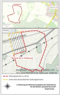 Die Stadt Marlow plant die 4. Änderung des Flächennutzungsplans für den Bereich „Solarpark Brunstorf“. Die Flächennutzungsplanänderung erfolgt im Parallelverfahren nach § 8 Abs. 3 BauGB mit der Aufstellung des Bebauungsplans Nr. 24 „Solarpark Brunstorf“ der Stadt Marlow. Ziel der 4. Änderung des Flächennutzungsplans soll sein, durch Änderung der bisherigen Darstellung als Fläche für die Landwirtschaft in die Darstellung als sonstiges Sondergebiet „Energiegewinnung auf der Basis solarer Strahlungsenergie“ gemäß § 11 Abs. 2 BauNVO die Realisierung und den Betrieb einer Freiflächenphotovoltaikanlage einschließlich der erforderlichen Nebenanlagen planungsrechtlich vorzubereiten.
