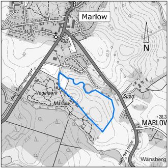 | im Westen | durch das Gelände des Vogelparks Marlow und den zugehörigen Parkplatz |