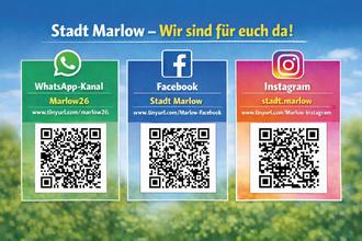 Über WhatsApp informieren wir schnell, direkt und verlässlich über wichtige Mitteilungen von der Stadtverwaltung, aktuelle Themen, Veranstaltungen in und um Marlow und kurzfristige Hinweise. Ergänzt wird das Ganze durch kleine Extras wie Umfragen oder kompakte Zusatzinfos. Der WhatsApp-Kanal bleibt damit unser zentraler Kanal für alles Wichtige in Marlow.