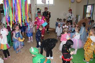Gleich nach den Winterferien, als viele Geschwister der Schulkinder auch Urlaub hatten, feierten wir unseren Fasching in der Kita. Schon viele Tage vorher überlegten und beratschlagten die Kinder untereinander, als wer oder was sie zum Fasching kommen wollten. Und so bunt und fantasievoll gestylt kamen die unterschiedlichen Tiere, Superhelden, Polizisten, Prinzessinnen, Feen und vieles mehr dann auch ins Haus.