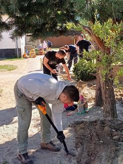 Arbeitseinsatz auf dem Hof der Kita "Maulwurfshügel"