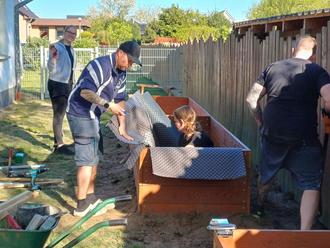 Zudem wurde ein neues großes Hochbeet gebaut. Hier sollen zukünftig bunte Wiesenblumen und sogar das ein oder andere Gemüse wachsen, welches die kleinen Gärtner dann selbst pflegen und ernten können.