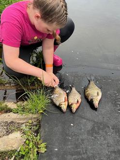 Es gingen kapitale Brassen, Plötze, Rotfedern, Ukeleien und Barsche an den Haken. Die gefangenen Fische wurden von den Kids fachgerecht vorbereitet und durch unseren "Fischkoch" Angelfreund Felix Hoffmann in wundervolle Fischfrikadellen verwandelt. Die kleinen, nur fingerlangen Ukeleien wurden frittiert, waren mal was anderes und schmeckten super. Mit diesen Leckereien, Bratwurst und Stockbrot ließen wir Abende an der Feuerschale in gemütlicher Runde ausklingen.