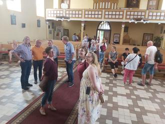 Im Rahmen einer Kirchbesichtigung in Kluszewo wurde gemeinsam mit dem Pfarrer das Thema Flucht und Vertreibung thematisiert, was nach dem zweiten Weltkrieg auch in diesem Dorf eine Rolle spielte.