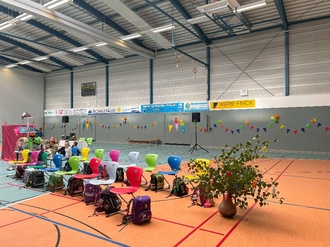 Festlich geschmückte Sporthalle der Grundschule Marlow