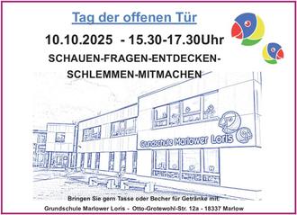 Am 10. Oktober 2025 gibt es wieder die Möglichkeit für einen Besuch unserer Schule. Ab 15.30 Uhr werden alle Türen geöffnet. Schul- und Hortteam stehen bereit für all Ihre Fragen. Kleine Leckereien bieten wir Ihnen gemeinsam mit unserem Schulverein auch wieder an. Ein Termin, den Sie sich heute schon in den Kalender schreiben sollten. Wir freuen uns auf Sie und viele Kinder!