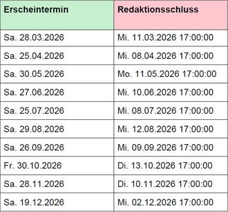 Der Öffentliche Anzeiger der Stadt Dargun wird seit diesem Jahr über die Linus Wittich Medien KG aus Sietow erstellt und erscheint in einem neuen Layout. Die Verteilung hat vertraglich die Deutsche Post übernommen. Wer Probleme bei der Zustellung des Öffentlichen Anzeigers feststellt, kann sich gern an die Stadt Dargun wenden. Redaktionelle Beiträge können nach wie vor per E-Mail eingereicht werden an: info@dargun.de. Gern können Sie uns Berichte aus Ihrer Vereinsarbeit oder Veranstaltungsankündigungen melden. Die Abwicklung von kostenpflichtigen Werbe- oder Familienanzeigen sowie sonstiger Inserate obliegt ausschließlich dem Verlag. Auch das Hinzufügen von Beilagenblättern ist möglich. Anbei finden Sie die jeweiligen Termine für den Redaktionsschluss sowie für die Herausgabe. Verspätet eingereichte Beiträge oder Inserate können leider nicht berücksichtigt werden.