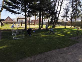 Ganz kurzfristig und spontan konnte der Elternrat am 07. März eine Rollrasenspende der Firma Peiffer Rollrasen GmbH & Co. KG aus Alt Zachun entgegennehmen. Diesen galt es möglichst sofort aufzubringen und zu pflegen. Dazu trafen sich einige der Eltern am Nachmittag in der Kita, um den Stadionrasen aus Magdeburg auf dem „Fußball-Platz“ der Kita zu verlegen. Passend dazu spendete eine Familie ein neues Fußballtor.