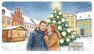 Der Duft von gebrannten Mandeln lag in der kalten Abendluft, als Hagen und Sophie vor dem prächtigen Weihnachtsbaum auf dem Hagenower Lindenplatz standen. Warme Lichter ließen die Dunkelheit funkeln und spiegelten sich in ihren Augen. „Ist er nicht der schönste?“, flüsterte Sophie und rückte ihren Schal zurecht. Hagen nickte, legte aber die Stirn in ernste Falten. „Der allerschönste – haben wir unseren Stadtwerken mit zu verdanken“, murmelte er. „So schön, dass man ihn uns jetzt schon nachmacht. Stell dir vor, ich hab’s gehört: Der Landtag hat unseren Baum geklaut! Derselbe steht jetzt angeblich auch vor dem Schweriner Schloss.“