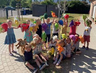Passend dazu erreichte uns eine private Spende der Familie Müller/Lehmann. Die ‚Frechen Früchtchen‘ und eine ‚Gemüsebande‘ hält Einzug in unsere Kita. Voller Freude werden die Kinder unserer Einrichtung nun von großen Figuren, ähnlich sämtlichem Obst und Gemüse, im Morgenkreis und in den Garten begleitet.
