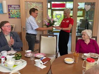 Am 23. Mai folgten sieben Mitglieder des Teterower Seniorenbeirats der Einladung zum gemeinsamen Kaffeetrinken in die DRK-Tagespflege. Der Vorsitzende Hans- Jürgen Fink bedankte sich dafür mit einem tollen Blumenstrauß bei Pflegedienstleiterin Cindy Bleinagel, bevor sich alle zusammen an die festlich gedeckte Kaffeetafel setzten. Schnell entstanden intensive Gespräche, viele Fragen wurden gestellt und auch beantwortet. Beim Anschauen der Chronik konnten sich die Mitglieder des Seniorenbeirats ein genaueres Bild von den Ereignissen und dem Ablauf in der Tagespflege machen. Beim Gehen äußerten einige noch, dass sie überrascht sind von der Komplexität der Arbeit in so einer Einrichtung.