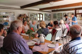 Das Angebot auf der Einladung der Volkssolidaritätsgruppe Schorssow, einen lustigen humorvollen Nachmittag zu erleben, wollten sich weder Mitglieder noch angesprochene Gäste entgehen lassen und so war es auch eine beachtliche Besuchergruppe, die sich da im angenehm temperierten Heimatmuseum Schorssow einfand. Der frische Erdbeerkuchen von Frau Lucke fand ungeteilten Zuspruch und der Kaffee mobilisierte die Lebensgeister aller Anwesenden. Nun konnte Freude aufkommen z. B. beim Vortragen von Zitaten. Weil man aber so schnell keine zur Hand hatte, verteilte Antje Brinckmann Zitatenbücher, die sie in weiser Voraussicht mitgebracht hat- te und in die wir uns auch sogleich vertieften – die uns dann aber doch mehr nachdenklich als fröhlich stimmten, z. B.: „Falsche Freunde glauben Gerüchten, echte Freunde glauben an Dich“ oder „Fremde Erfahrungen ritzen die Haut, eigene schneiden ins Fleisch“. So wusste Antje aus ihrem Leben zu berichten, dass ihr Vater sie nach dem Spruch erzogen hatte: „Nimm dir die Zeit, um zu arbeiten, das ist der Preis des Erfolges.“ Dieses Motto hat sie stets erfolgreich beherzigt! Die nächste Überraschung für alle war dann ein Quiz, den auszuarbeiten Rita Mache sehr viel Fleiß und Mühe gekostet hatte und bei deren Lösung wir wahrhaft nichts zu lachen hatten: Beschämt mussten wir uns eingestehen, ziemlich ungenaue Kenntnisse zu haben, was unsere Gemeinde Schorssow betraf: Größe, Alter, besondere Sehenswürdigkeiten, Events … Schnell kam man da in Versuchung, bei dem Nachbarn nachzufragen, ob der eventuell Bescheid wusste …? Und statt schweigender Disziplin setzte fröhlicher, unbekümmerter, lauter Gedankenaustausch ein. „Aber so ermittelt man doch keinen Sieger“, rief uns die Quizmeisterin zur Ordnung. Recht hat sie. Gelernt haben wir an diesem Nachmittag eine ganze Menge, aber gelacht haben wir wenig! Das holen wir bestimmt nach. Beim nächsten Treffen im Juli wird erst mal gegrillt. Das hat Tradition und darauf freuen wir uns schon.