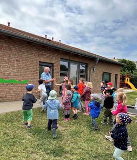 Am 21.06.2024 lud die Kita „Kleiner Maulwurf“ des Institut Lernen & Leben e.V. den (nun ehemaligen) Bürgermeister Christian Lubina ein, um ihm gebührenden Dank entgegen zu bringen. Nach vielen Jahren der kooperativen Zusammenarbeit haben die Kinder der Kita ein Ständchen einstudiert und vorgetragen. „Wo hat der Bürgermeister schon im Sand gespielt und sich im tiefen Matsch so richtig wohlgefühlt?“, heißt es in ebendiesem Lied. Im Anschluss daran wurde Herr Lubina von Klein & Groß mit Konfetti überhäuft. Der Geschäftsführer des Institut Lernen & Leben e.V. ließ sich den Anlass für ein großes Dankeschön nicht entgehen und richtete persönliche Worte an Christian Lubina.