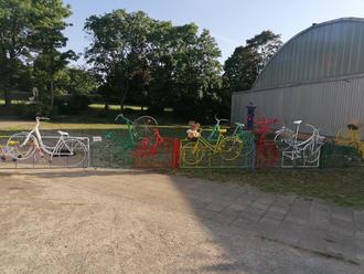 Unter dem Motto: „Aus alt, mach etwas anderes“, entstand aus alten, nicht mehr benutzten Fahrrädern ein neuer Schulzaun, der das Gelände der Schule abgrenzt.