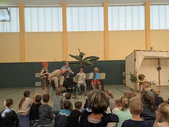Die Kinder erlebten eine musikalische Geschichte voller Abenteuer, spannenden Begegnungen, instrumentalen und gesanglichen Darbietungen mit vielen lustigen Momenten (z.B. Schlange Günter).