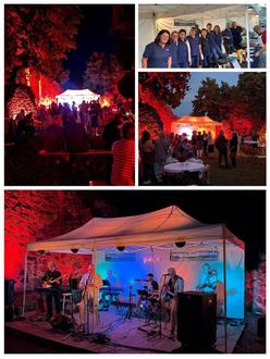 Die BristowCats, eine aus 6 Musikern bestehende Hobby-Band, präsentierte sich mit Ragtime, Swing & Blues und brachten durch ihre rhythmischen Klänge die Körper der Zuhörer zum sanften Mitschwingen. Selbige hatten sich in losen Gruppen um Stehtische, auf Bänken und mitgebrachten Stühlen postiert, genossen schwatzend und zuhörend in fast famihärer Atmosphäre einige Stunden musikalischer Unterhaltung. Das einmalige Ambiente der Kirchruine mit seinen aus Feldsteinen bruchstückhaft erhaltenen Mauern, die hereinfallenden Strahlen der untergehenden Sonne und die später dezent farbwechselnde künstliche Beleuchtung unterstützten noch die besondere Stimmung dieses kulturellen Abends.
