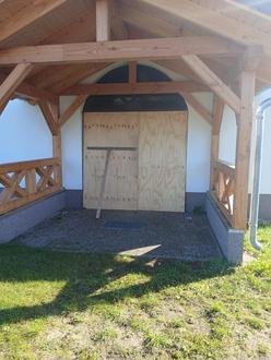 Wer über den Friedhof geht, wundert sich wie die Tür der Kapelle aussieht. Aber keine Angst, die Tür ist zu einer Instandsetzung und wird wieder schnell im neuen Glanz eingebaut.