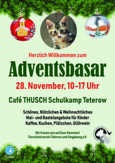 Am 28. November empfangen wir im Café THUSCH Tierfreunde, Interessierte, Kinder, Kuchenliebhaber und Spaziergänger.