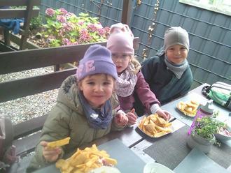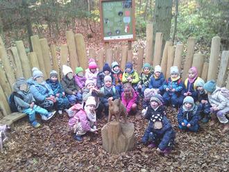 Der Pfad besteht aus zahlreichen Stationen, die Wissen über die Tier- und Pflanzenarten des Waldes vermitteln. In unmittelbarer Nähe gibt es die Station "Sportskanone gesucht". Sie soll Lust auf Bewegung im Wald machen. Nach einem ausgiebigen Spaziergang stärkten wir uns um 11.00 Uhr in der Waldgaststätte „Uns Hüsung“. Es gab für die Kinder Pommes und Nuggets. Gut gestärkt ging es danach wieder zum Bus. Für alle war es ein großartiges Erlebnis.