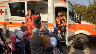 Am 18. Oktober 2024 bekam unsere Kita,,Kleiner Maulwurf“ Besuch von der Rettungswache aus Teterow. Herr Treichel und seine Kollegin Frau Behring erklärten ihre Aufgaben im Berufsalltag und ließen die Kinder den Rettungswagen erkunden. Es wurden viele verschiedene Materialien und Geräte vorgestellt, die unsere kleinen Maulwürfe mutig und voller Freude ausprobieren durften. Für die Kinder war dies ein aufregendes Erlebnis. Ein großes Dankeschön möchten wir an das Deutsche Rote Kreuz Rettungsdienst Güstrow gGmbH für diese Möglichkeit aussprechen.