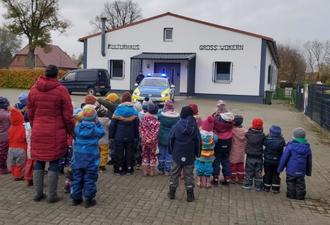 Die nächsten Besucher erwarteten wir am 13. November 2024: Herr Engel und Herr Sosna der Polizeidienststelle Teterow kamen in unsere Kita. Sie stellten den Kindern ihren Dienstwagen vor und ermöglichten es ihnen, diesen zu erkunden. Die „Kleinen Maulwürfe“ lernten die tägliche Ausrüstung und deren Funktionen, sowie die Aufgaben eines Polizisten kennen. Anschließend erfreuten sich die Kinder an Blaulicht und Sirenenlärm. Wir danken dem Polizeirevier in Teterow für dieses großartige und lehrreiche Erlebnis!