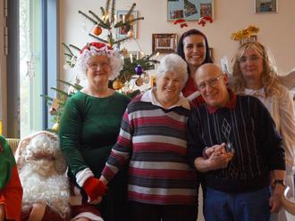 Nach dem Frühstück klopfte es dann auf einmal an der Tür. Der Weihnachtsmann mit seiner Frau, ein Engel und ein Wichtel schauten vorbei und brachten für jeden Tagesgast ein Geschenk mit. Natürlich musste jeder, der ein Geschenk bekommen wollte, ein Gedicht aufsagen oder ein Lied singen – das sorgte für eine festliche Stimmung und weckte viele Erinnerungen.