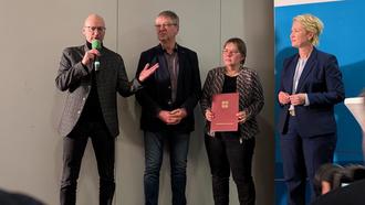 Am 20.01.2026 übergab Ministerpräsidentin Manuela Schwesig im Rahmen des Bürgerforums in Teterow den Zuwendungsbescheid über 500.000,00 Euro Sonderbedarfszuweisung für den Schulneubau der Johann-Heinrich-von Thünen-Schule in Jördenstorf an den Schulleiter Herrn Jens Görke, den Schulausschussvorsitzenden Herrn Henning Helms und die Leitende Verwaltungsbeamtin des Amtes Mecklenburgische Schweiz Frau Karin Zillmann.