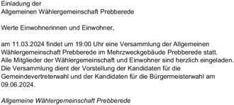 Allgemeinen Wählergemeinschaft Prebberede