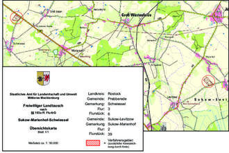 Die genaue Abgrenzung nach Flurstücken kann beim Staatlichen Amt für Landwirtschaft und Umwelt Mittleres Mecklenburg, Dienststelle Bützow, Schlossplatz 6, 18246 Bützow in einem Zeitraum von zwei Wochen nach der öffentlichen Bekanntmachung zu den Sprechzeiten des Amtes oder zu vereinbarten Terminen eingesehen werden.